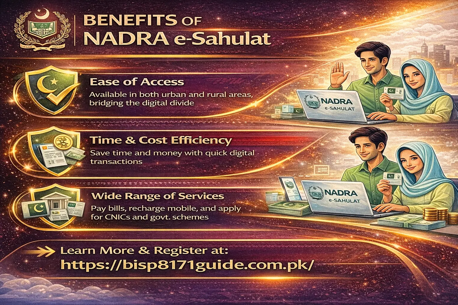 The NADRA e-Sahulat service offers a range of benefits that contribute to the digitalization and financial inclusion in Pakistan: