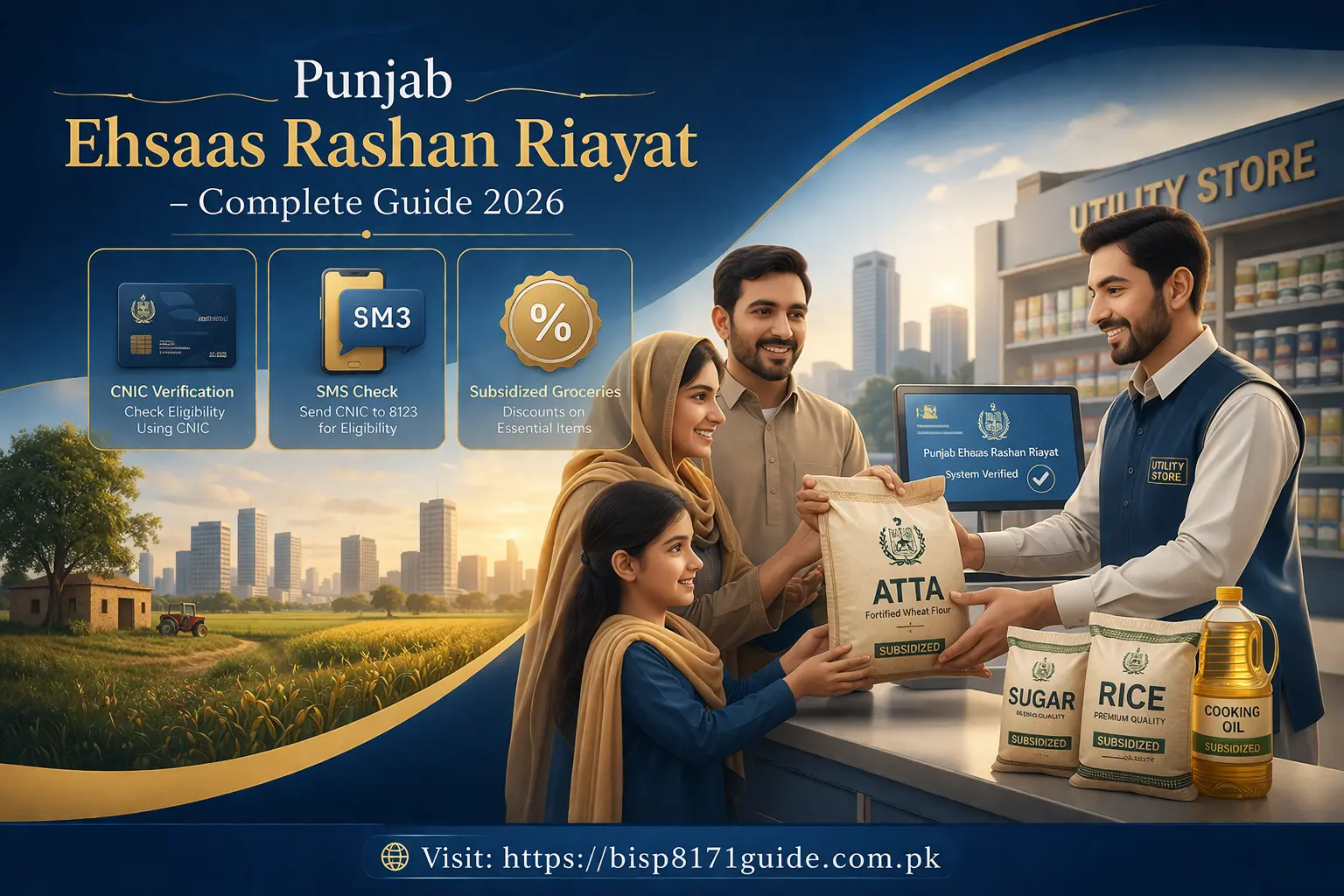 The Punjab Ehsaas Rashan Riayat initiative is a subsidy based support system that allows eligible families to purchase essential groceries at lower prices. Instead of giving direct cash in most cases, the program reduces the cost of items at selected stores.
